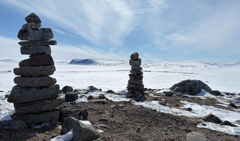 En medio de una caminata que hice por los alrededores de Clyde River, Nunavut, un domingo de descanso, me encontré con una mujer de unos 65 años aproximadamente, halando un trineo y cargando a sus espaldas un bebé sonriente con una piel tan blanca como la nieve que nos rodeaba. Le pregunté a la señora de dónde era, pues me dio mucha curiosidad su aspecto, tan distinto al de los locales. Su respuesta, tan extensa y sorprendente la completó en el trayecto que compartimos en mi ida hacia los inukshuk de una montaña a 40 minutos de caminata.